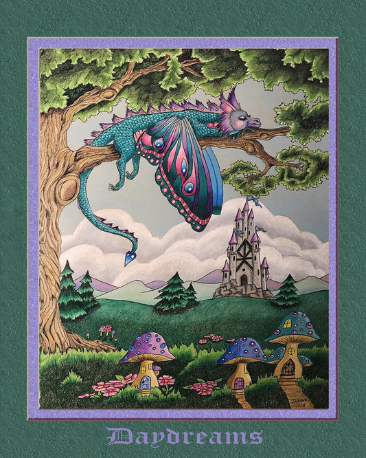 Printed by the artists with custom, hand-cut mats. Each print is loving matted out to fit a standard 16x20 inch frame, then signed and numbered by the artist. Prints this size are limited to an edition size of 100. Once we have created 100 prints, the edition is closed and the image will no longer be available in this size. Mat colors may vary by availability, but will always be in colors hand-picked by the artist and coordinating with the image. We can try to honor custom mat color requests, but color choices may be limited based on availability.