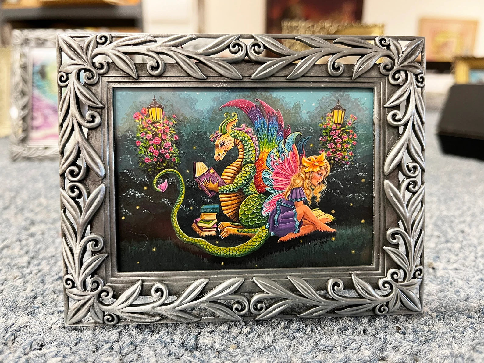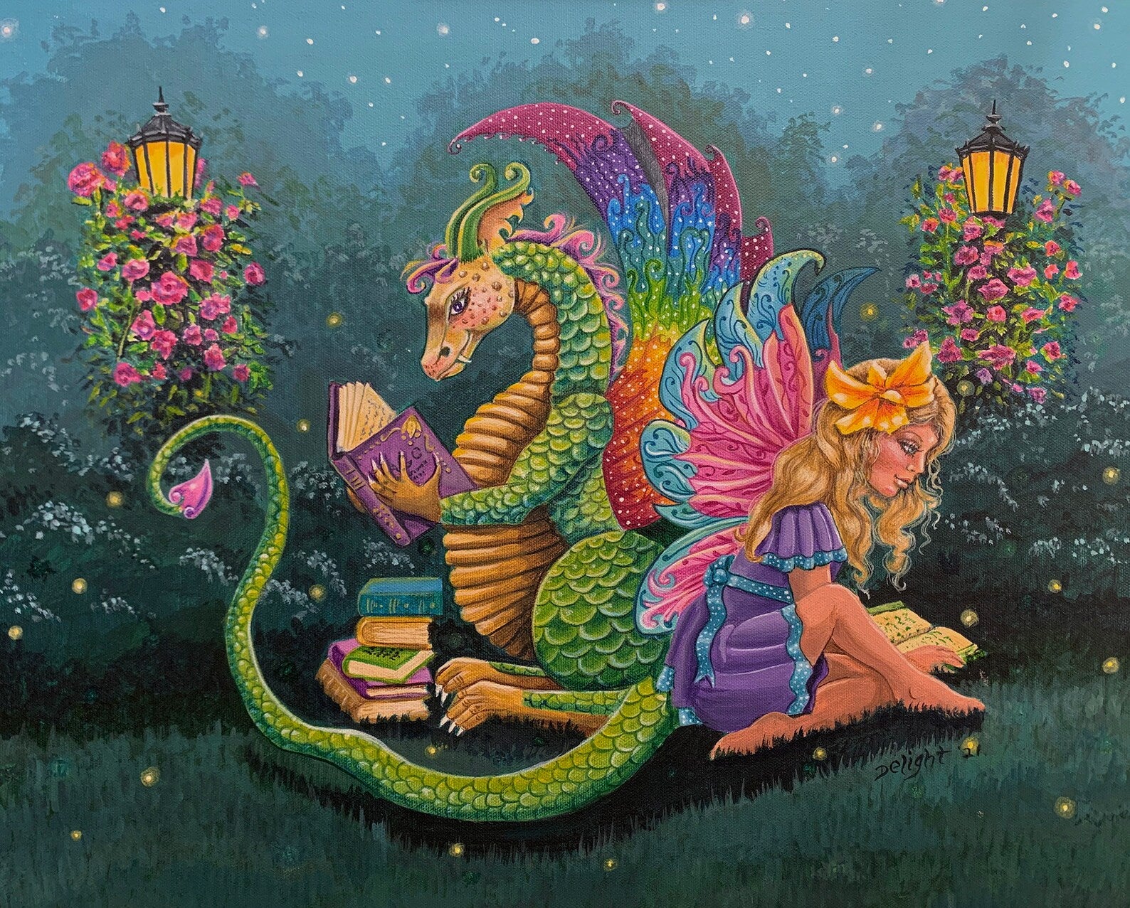 This dragon and fairy are taking some time out for themselves to read whatever books that have captured their heart and imagination.