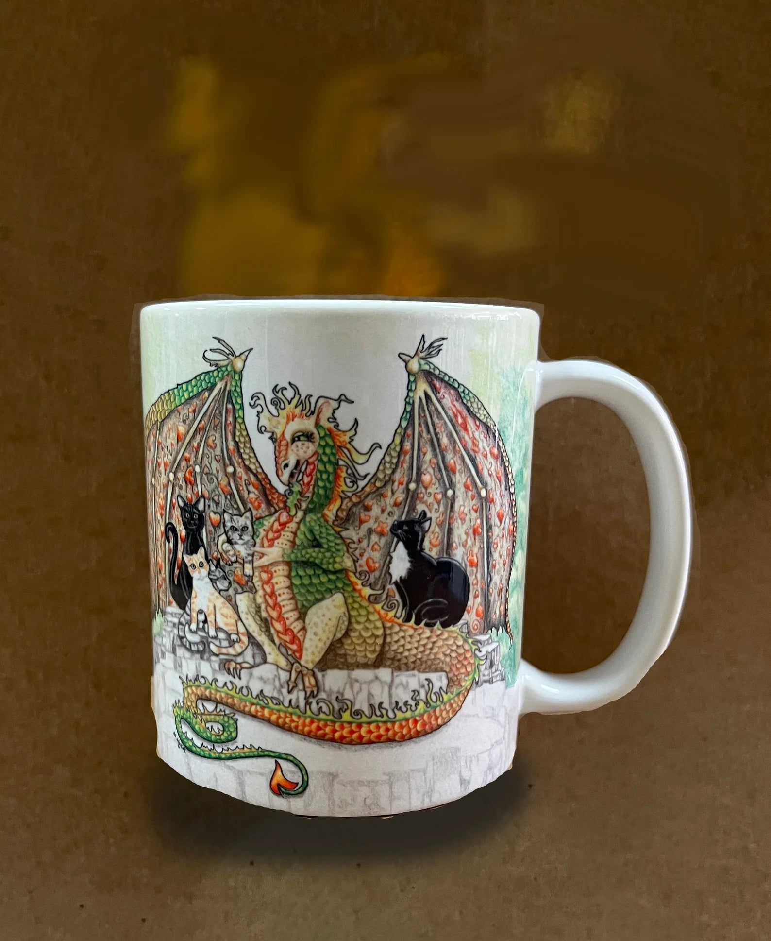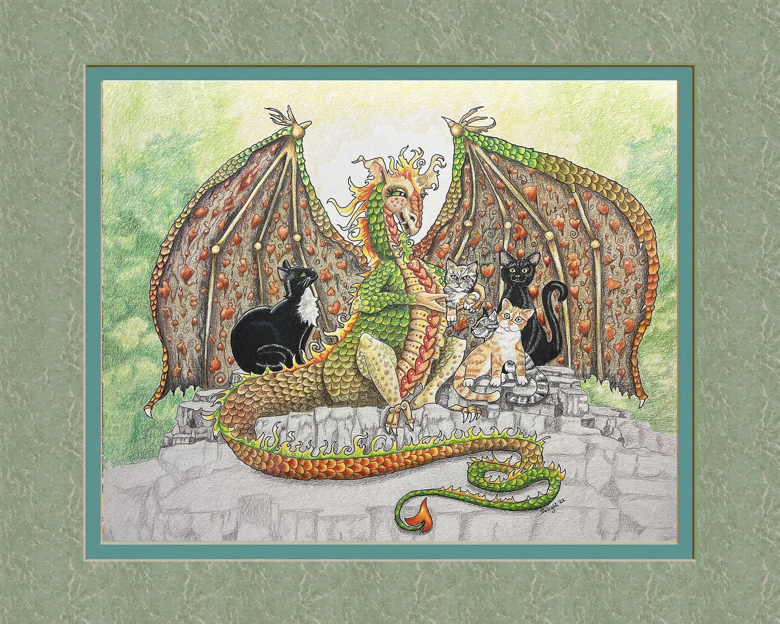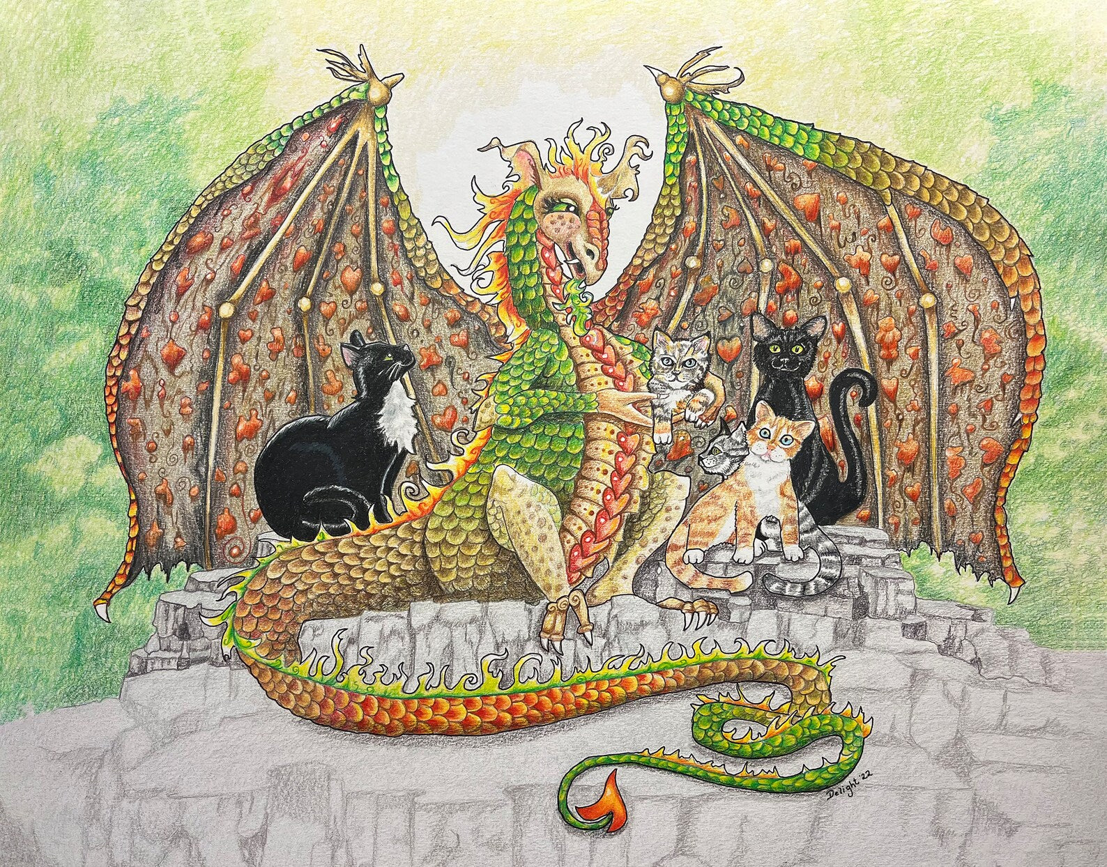 A dragon with her cats