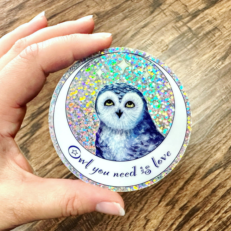 Wisdom radiates from this regal snowy owl crowned in luminous stars, floating above her brow. Soft, fluffy, and no doubt very powerful, the snowy owl keeps her secrets in the stars.