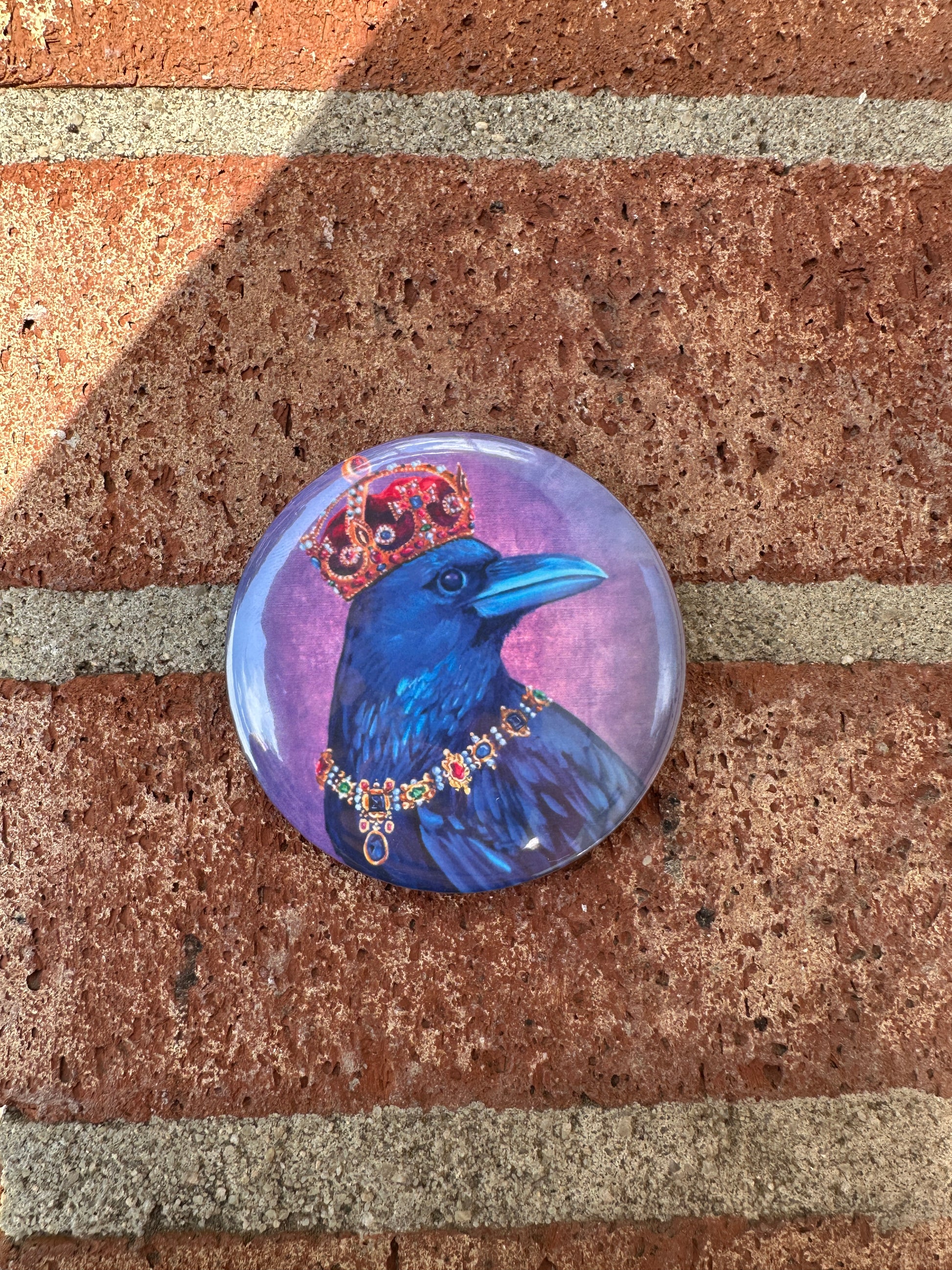 A regal crow is crowned in the jewels of the Tudor era. Wearing the livery collar of Henry VIII, and the crown of England (complete with the Ruby of the Black Prince of Wales) as it appeared in Henry's day.